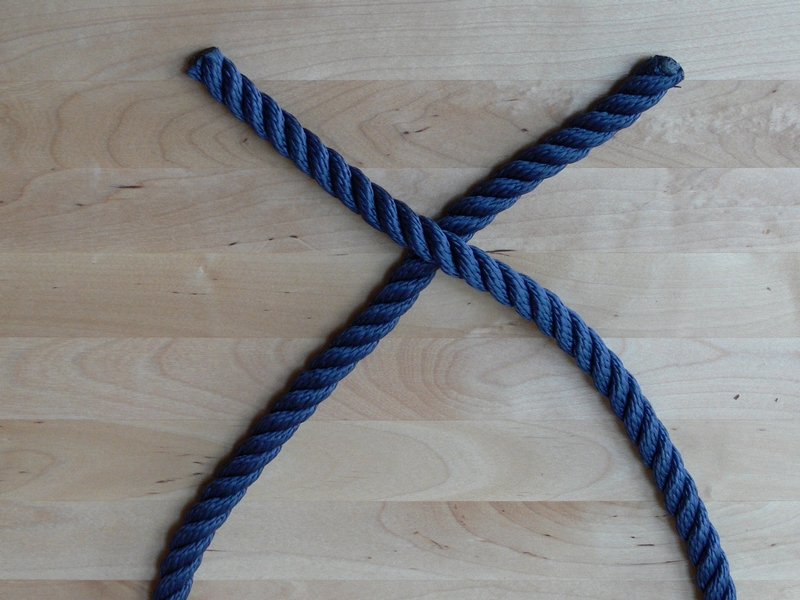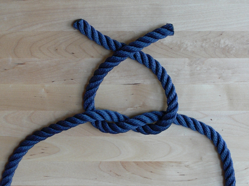 einen gewöhnlichen Knoten bilden, dann das linke Seilende über das rechte